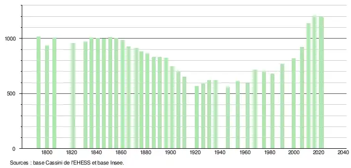 - ↑ Fiches Insee - Populations de référence de la commune pour les années 2006, 2007, 2008, 2009, 2010, 2011, 2012, 2013, 2014, 2015, 2016, 2017, 2018, 2019, 2020, 2021 et 2022.