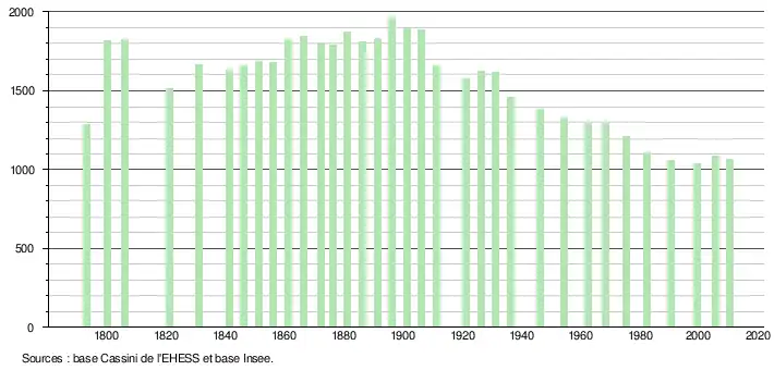 | L'évolution du nombre d'habitants est connue à travers les recensements de la population effectués dans la commune depuis 1793. À partir du , les populations légales des communes sont publiées annuellement dans le cadre d'un recensement qui repose désormais sur une collecte d'information annuelle, concernant successivement tous les territoires communaux au cours d'une période de cinq ans.