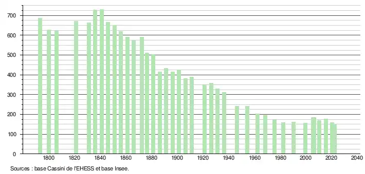 - ↑ Population municipale de référence en vigueur au 1er janvier 2025, millésimée 2022, définie dans les limites territoriales en vigueur au 1er janvier 2024, date de référence statistique : 1er janvier 2022.