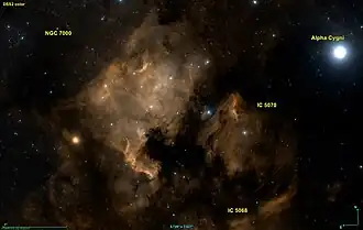 | 117 | Nébuleuse de l'Amérique du Nord | ![]() | NGC 7000, Nébuleuse du Pélican, IC 5070, C 20, Sh2-117 |