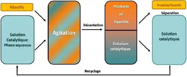Si la catalyse homogène permet de réaliser des réactions intéressantes, tant sur le plan de l’activité que de la sélectivité, la récupération du catalyseur y est néanmoins délicate dans la mesure où celui-ci est dissous dans les produits au terme de la réaction. Les techniques de séparation sont alors complexes. Dans ce contexte, la catalyse organométallique biphasique aqueuse est une méthode élégante et respectueuse de l’environnement, permettant de contourner ces difficultés en utilisant un solvant non toxique et non inflammable : l’eau. Le catalyseur est immobilisé dans la phase aqueuse par des ligands hydrosolubles, ce qui offre le double avantage de permettre l’extraction facile du ou des produit(s) formé(s), par décantation et le recyclage de la phase catalytique.