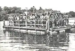 Le déplacement des troupes, des véhicules et du matériel sur 22 kilomètres à Chéché (en), sur la rive sud du rio Corubal, a été une opération difficile mais a été menée à bien. Dans l'après-midi du , la force a commencé à utiliser deux bacs pour traverser le fleuve du sud au nord. Avec des voyages répétés, 100 tonnes de matériel et de munitions, 28 véhicules lourds et environ 500 hommes ont fait la traversée. Les bacs étaient des radeaux d'environ 4 mètres sur 6. Les plates-formes en bois étaient soutenues par des canots et des barils diesel vides et tirées par un bateau avec un moteur hors-bord[3].