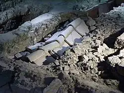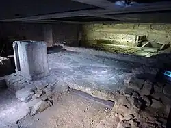 Deux basiliques successives construites au XIe siècle ont été mises en évidence par les fouilles, la plus récente détruite par un incendie.