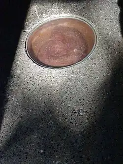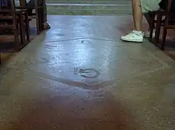 Depuis l'entrée de la nef, le cheminement est marqué de plusieurs étapes, symboles gravés au sol et rehaussés de métal incrusté.