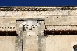 L'édifice comporte un entablement qui court le long de la nef, constitué d'une architrave à bandeaux, d'une frise et d'une corniche. Sur la face nord cette frise est en partie détruite mais conserve quelques sculptures : deux paires de griffons affrontés, un agneau pascal, Ève et le serpent, un homme jouant du cor. La face sud, bien visible à partir du cloître, laisse apparaître les faces des contreforts ornés de deux pilastres réunis au sommet par deux petits arcs dont les médianes s'appuient sur une console sculptée. Au-dessus des contreforts court, sur toute la longueur du mur, une frise somptueuse plus élaborée que celle du nord, composée d'un rinceau d'acanthes.