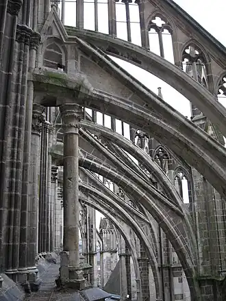 - ↑ « Chœur sud » [jpg], sur Gorik-Romantik.de (consulté le ).Photo : les arcs-boutants à claire-voie de la face sud du chœur sont soutenus par d'autres arcs-boutants de plus grand rayon. À gauche les baies du triforium du chœur.