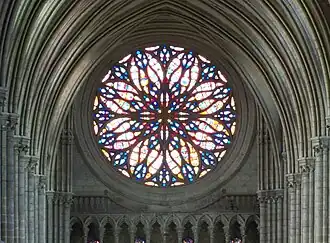 La rosace occidentale, dont le sommet est situé à 42 mètres, est refaite au XVIe siècle dans le style gothique flamboyant, cela sur ordre du maire de la ville.