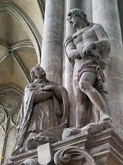 En , des volontaires lillois entrent dans la cathédrale et mutilent à coups de sabre les sculptures de la clôture du chœur. Elles sont restaurées au XIXe siècle par les frères Duthoit. Les fleurs de lys des dosserets des stalles sont bûchées, et rétablies en 1814-1815, elles sont de nouveau supprimées en 1831 puis refaites en 1948-1949 par Léon Lamotte, qui sculpta près de 2 000 fleurs de lys[34]. La statue de saint Louis de la chapelle du Pilier vert est détruite, des croix sont également supprimées, mais l'essentiel du décor sculpté est préservé.