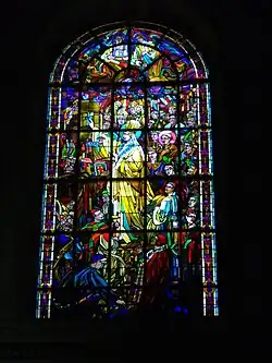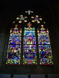 Les vitraux et verrières de la cathédrale sont réalisés par le maître-verrier nancéien Jean-Jacques Grüber, pour remplacer ceux pulvérisés par les bombardements allemands de la Première Guerre mondiale[5]. Un vitrail situé dans le transept occidental et réalisé de 1927 à 1934, illustre la consécration de la cathédrale par le pape Eugène III le [7],[22].