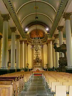 L'église est construite par Piet Huysens en style néoclassique selon un plan d'église-halle à trois nefs. La nef du milieu possède des voûtes en berceau. Les nefs de côté sont à plafond plat.