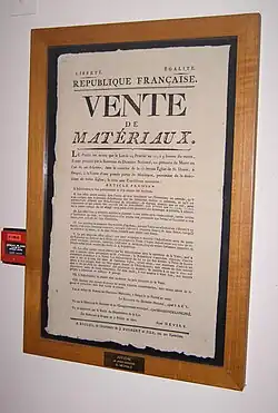 Avis de vente des matériaux provenant de l'église Saint-Donatien.