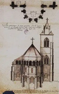 Abside orientale avant l'effondrement du clocher en 1724.