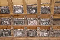 Les plafonds des galeries[10] offrent une collection de panneaux de bois peints des XIVe et XVe siècles[11], avec de jolies arcades retombant sur des colonnettes doubles.