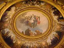 La coupole est ornée d'un ensemble pictural homogène[16] exécuté par William Bouguereau. Il se compose de 6 tableaux représentant les scènes de la vie de la Vierge entourant la peinture de l'Assomption datée de 1875. les autres tableaux représentent l'Annonciation, la Visitation, la Nativité, la Fuite en Égypte ; la Pâmoison de la Vierge ; la Vierge de pitié. Chaque tableau[17] est constitué de deux plaques de cuivre accolées. Ils ont été mis en place en 1876. "L'Annonciation", peinte par François Édouard Picot, fut présentée au Salon de 1827.