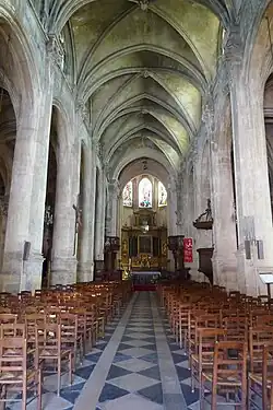 Le double bas-côté nord en particulier est un chef-d'œuvre de la Renaissance, attribué sans preuve à Pierre Le Mercier par Léon Palustre. Ses chapiteaux très élégants sont ornés aux angles d'enfants ou de satyres. La troisième colonne est couronnée par des chimères cornues, la quatrième par des enfants qui tiennent des guirlandes et la sixième par un chapiteau corinthien. Les clés de voûte sont des médaillons décorés d'arabesques. Dans le second bas-côté nord, du côté des chapelles, les doubleaux retombent sur des pilastres entre deux colonnes cannelées, similitude avec l'église Saint-Eustache de Paris. Contrairement aux autres voûtes, celles des chapelles sont divisées par des liernes dans lesquelles s'interposent des losanges. Les baies sont plein cintre mais dotées d'un réseau flamboyant[a 6].