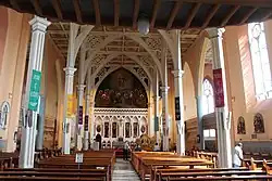 Le bâtiment fut redécoré lors d’une rénovation débutée en 1894 sous la direction de Joshua Clarke, père de Harry Clarke. La fresque de l’Assomption de Marie, derrière et au-dessus du maître-autel (démoli) de J.J. McCarthy, est de Nagle et Potts.