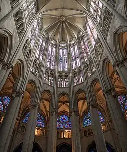 Le chevet de la cathédrale s'élève sur trois niveaux distincts. La poussée des voûtes et des murs est contenue par une série d'arcs-boutants qui s'appuient sur huit contreforts qui ceinturent les chapelles rayonnantes.