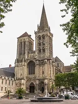 Trois tours dominent le bâtiment : la tour-lanterne, fréquente dans les grandes églises normandes, et deux tours de façade. Celle du nord, élancée, remonte au XIIIe siècle. Sa voisine fut reconstruite entre 1579 et 1600 après effondrement. Terminée par une flèche, elle culmine à 72 mètres. Son style est difficilement définissable : gothique flamboyant avec quelques caractères Renaissance (des arcs plein-cintres, des ouvertures assez petites, une horizontalité marquée). L’architecte Georges Duval préfère parler d’un « pastiche roman ».