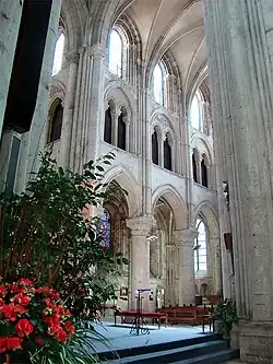 Le reste de l’église fut probablement entièrement réalisé dans le premier quart du XIIIe siècle. L'incendie de 1223 ne semble pas détruire la cathédrale[2]. Le transept et les deux premières travées du chœur sont dans le même style que la nef. L’extrémité du chœur révèle par contre un revirement. Le maître d’œuvre, différent du temps d’Arnoul, imposa un style gothique normand et non plus francilien : les colonnes qui composent les arcades sont doubles, les tailloirs prennent une forme circulaire ou polygonale, des trilobes percent les murs. Surtout, le style gothique apparaît beaucoup plus évolué et élancé : un triforium remplace les fausses tribunes de la nef, les arcades se resserrent, les colonnes s’affinent, les moulurations se perfectionnent.