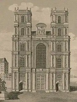 Le projet donné par Nicolas Marie Potain fut approuvé par Louis XV en Conseil le . Il est conservé aux Archives nationales[4]. « Gêné par l'environnement pour étendre les bras d'une croix latine, Potain a dessiné un vaisseau longitudinal à collatéraux et déambulatoire. L'ordre est un ionique cannelé. Dans l'abside, la chapelle ovale de la Communion prend place entre les clochers gothiques[5]. »