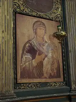 Quant au maître-autel il est consacré en 1612, en l'honneur de Sainte-Sophie, soit la Sagesse divine[13]. Sophie est la personnification de la philosophie chrétienne, elle représente la sagesse divine personnifiée. La dédicace à Sophie est historique, elle vient d'une ancienne tradition qui a commencé à Byzance. Sophie apparaît dans de nombreuses villes (Sainte-Sophie à Constantinople, cathédrale Sainte-Sophie de Kiev, cathédrale Sainte-Sophie de Novgorod, basilique Sainte-Sophie de Sofia et d'autres encore).