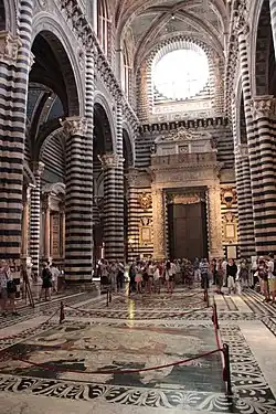 Le pavement intérieur du Duomo de Sienne constitue une œuvre exceptionnelle, qui couvre tout le sol de la cathédrale. L'ensemble des panneaux n'est visible en totalité que peu de temps dans l'année, certains restant visibles de manière permanente, d'autres restant protégés par recouvrement.