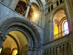 Les chapiteaux des bras des transepts, surtout ceux du sud, définissent un style anglo-normand avec des éléments normands : animaux fantastiques qui viennent des techniques utilisées dans les bordures de la Tapisserie de Bayeux, des éléments anglo-saxons comme les feuillages empruntés aux enluminures et des éléments géométriques communs aux pays des deux côtés de la Manche.