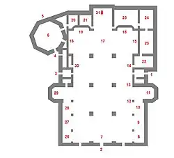 La disposition actuelle de la sacristie a été conçue et exécutée par Luca Andreoli en 1776 . Elle se compose de trois grandes salles.