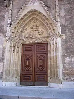 Le portail principal, dit de la Rédemption, est l'œuvre d'un maître allemand inconnu ; il date du XIVe siècle. Décoré de figures en haut-relief représentant la Rédemption, il est surmonté d'un arc en ogive, et est couronné d'un porche suspendu de 1926. L'ensemble est surmonté d'un pignon très pointu dans lequel se trouve l'aigle patriarcal.