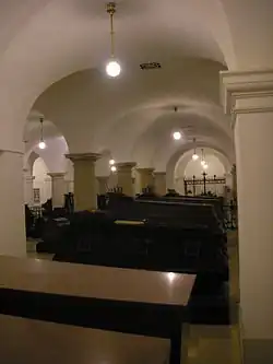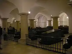La crypte réunit près de 95 sarcophages, où reposent les membres de la dynastie des Hohenzollern. Il s'agit plus d'une crypte familiale dynastique car on n'y trouve que peu de souverains. Deux rois de Prusse seulement y reposent, Frédéric Ier et sa deuxième épouse Sophie-Charlotte de Hanovre dans deux tombeaux d'Andreas Schlüter, ainsi que Frédéric-Guillaume II.