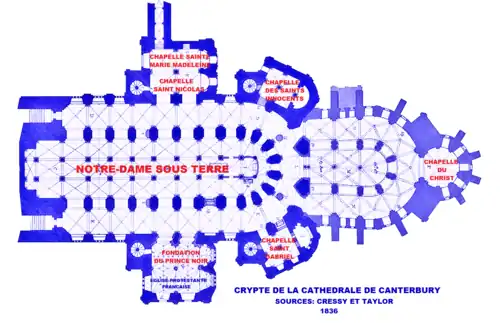 - ↑ (en) William Archibald Scott Robertson, The crypt of Canterbury Cathedral architecture, its history and its frescoes, Kent Archæology Society, .