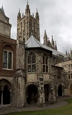 Le cœur de la ville constitue au Moyen Âge une véritable cité ecclésiastique centrée sur la cathédrale (Christ Church). Après la conquête de l'Angleterre de 1066, Lanfranc le premier archevêque nommé par Guillaume le Conquérant entoure ce quartier d'une enceinte particulière à l'intérieur du périmètre urbain. Ainsi la cathédrale, le monastère bénédictin et le palais épiscopal forment une entité close et autonome.