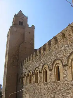 La cathédrale a été commencée dans le style arabo-normand en 1131, la Sicile ayant été conquise par les Hauteville en 1091[1]. Selon la tradition, le bâtiment a été érigé après un vœu fait au saint Sauveur par le roi de Sicile, Roger II, après qu'il eut réchappé d'une tempête sur la plage de la ville. Le bâtiment aux allures de forteresse se dresse, vu de loin, comme une énorme masse juchée au sommet de la cité médiévale. Il constitue également un puissant témoignage de la présence normande.