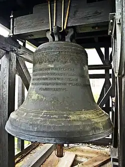 En 1994, un nouveau beffroi est mis en place à l'aide d'un hélicoptère. Ce clocher abrite quatre cloches coulées en 1995 (1 180 kg, 700 kg, 500 kg et 200 kg) qui sonnent tous les quarts d'heure en jouant les premières notes de la symphonie nº 5 de Beethoven suivis par un carillon qui indique l'heure. En 1995, une nouvelle horloge a été installée sur le clocher. Entre 1996 et 1998, le toit est reconstruit ainsi que les vitraux.