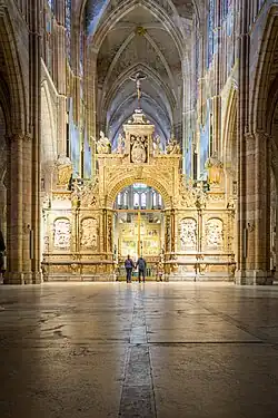 Le retable consacré à Marie, Mère de Dieu, peint par Nicolàs Francés (v.1390-v.1468), est un exemple du style gothique international du XVe siècle. À sa gauche une remarquable Mise au tombeau d'influence flamande est attribuée au maître de Palanquinos. Au pied de l'autel une châsse d'argent abrite les reliques de saint Froilàn, patron de Léon.