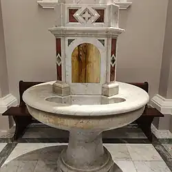 Son intérieur, en forme de croix latine, comporte trois nefs dont les deux côtés se terminent par deux petites chapelles. Dans la partie centrale de la nef gauche se trouve une sculpture en marbre représentant l'évêque Francesco Saverio Mangeruva et le sarcophage de l'évêque Michele Alberto Arduino[1]. Le presbytère, qui se termine par une abside circulaire, est couronné par une coupole et est décoré de symboles eucharistiques. Les nefs latérales se terminent par deux chapelles[1].