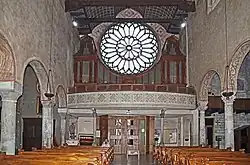 Sur la grande cantoria, près du mur à l'envers de la façade, se trouve l'orgue Mascioni opus 345, construit en 1922 en remplacement d'un instrument construit par Giovanni Tonoli en 1860, pillé de tous ses tuyaux pendant la Première Guerre mondiale. La construction d'un nouvel orgue fut confiée au facteur d'orgues Vincenzo Mascioni qui y travailla de décembre 1921 à novembre de l'année suivante, date à laquelle l'ouvrage est inauguré avec une série de concerts donnés par Marco Enrico Bossi.