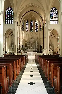Quelques mois plus tard pourtant, la flèche occidentale est frappée par la foudre lors d'un violent orage, causant quelques dégâts à la structure à peine achevée. Le , tandis que le gros-œuvre est achevé, a lieu la première messe solennelle dans le sanctuaire[3]. Il faut attendre encore quelques années pour que le chantier s'achève définitivement et que la cathédrale, qui aura coûté près de 500 000 $, puisse être consacrée en présence de plusieurs dizaines d'ecclésiastiques et d'une importante foule de fidèles[3].
