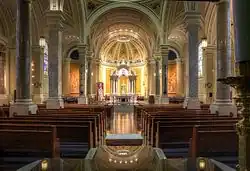 La cathédrale néorenaissance a été bâtie pour un coût de 220 000 dollars[1]. Elle est construite en pierre calcaire de Bedford et mesure 169 pieds (52 m) de long pour 100 pieds (30 m) de large au transept. Le dôme s'élève à 135 pieds (41 m). Les portes de bronze, qui ont été conçues par le bureau Domus Dei d'Italie, ont été installées en 1997.