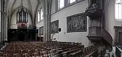 Avant la Révolution française, l'église de la Trinité possédait treize retables[32]. Seul le grand retable a survécu, les deux autres plus petits provenant de l'église des Cordeliers.