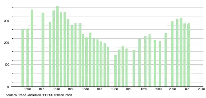 - ↑ Fiches Insee - Populations de référence de la commune pour les années 2006, 2007, 2008, 2009, 2010, 2011, 2012, 2013, 2014, 2015, 2016, 2017, 2018, 2019, 2020, 2021 et 2022.