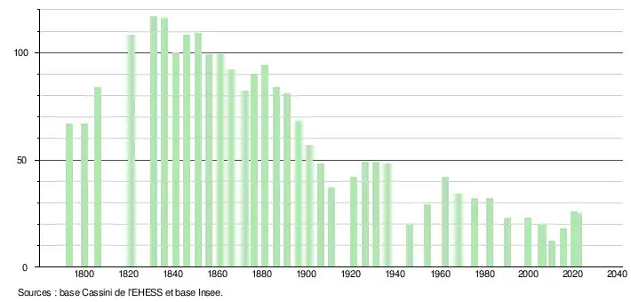 - ↑ Population municipale de référence en vigueur au 1er janvier 2025, millésimée 2022, définie dans les limites territoriales en vigueur au 1er janvier 2024, date de référence statistique : 1er janvier 2022.
