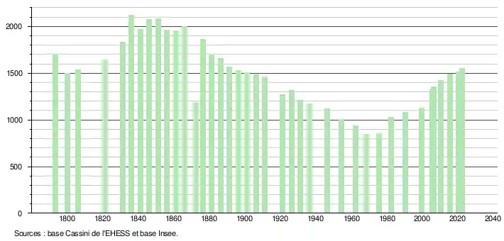 - ↑ Fiches Insee - Populations de référence de la commune pour les années 2006, 2007, 2008, 2009, 2010, 2011, 2012, 2013, 2014, 2015, 2016, 2017, 2018, 2019, 2020, 2021 et 2022.