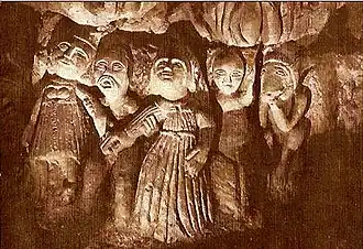 Datant probablement de la seconde moitié du XVIe siècle, l’œuvre comprend environ trois cents personnages stylisés, parfois provocants. Il semble qu'en maints sujets, l'intention du ou des sculpteurs ait été d'ordre satirique, exprimant une critique politico-religieuse à l'égard notamment de la cour du roi et des Catholiques.
