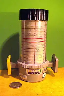 Un ondemètre (en) à absorption. Cet exemple historique de détermination de la fréquence d'une cavité consistait en une cavité réglable et calibrée en fréquence. Lorsque la fréquence de résonance de la cavité atteint la fréquence des micro-ondes appliquées, elle absorbe de l'énergie, provoquant une baisse de la puissance de sortie. Ensuite, la fréquence peut être lue sur l'échelle. De nos jours, on utilise un analyseur de réseau.