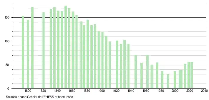 - ↑ Fiches Insee - Populations de référence de la commune pour les années 2006, 2007, 2008, 2009, 2010, 2011, 2012, 2013, 2014, 2015, 2016, 2017, 2018, 2019, 2020, 2021 et 2022.