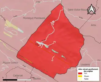 Les mouvements de terrains susceptibles de se produire sur la commune sont soit des chutes de blocs, soit des glissements de terrains, soit des effondrements liés à des cavités souterraines, soit des mouvements liés au retrait-gonflement des argiles. Près de 50 % de la superficie du département est concernée par l'aléa retrait-gonflement des argiles, dont la commune de Cazaux[35]. L'inventaire national des cavités souterraines permet par ailleurs de localiser celles situées sur la commune[36].