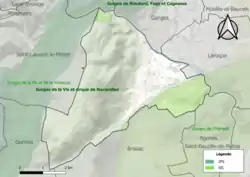 L’inventaire des zones naturelles d'intérêt écologique, faunistique et floristique (ZNIEFF) a pour objectif de réaliser une couverture des zones les plus intéressantes sur le plan écologique, essentiellement dans la perspective d’améliorer la connaissance du patrimoine naturel national et de fournir aux différents décideurs un outil d’aide à la prise en compte de l’environnement dans l’aménagement du territoire. Une ZNIEFF de type 1[Note 2] est recensée sur la commune[11] : les « gorges de la Vis » (3 661 ha), couvrant 8 communes dont cinq dans le Gard et trois dans l'Hérault[12] et trois ZNIEFF de type 2[Note 3],[11] :