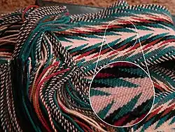Enfin, l'artisan termine sa pièce en torsadant ou en tressant la longueur de fil restant afin de faire les franges. Traditionnellement, les franges se composaient d'une tresse de 1 ou 3 pouces et le reste était torsadé.