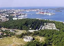 À noter aussi la présence, sur la colline qui domine le centre-ville historique, du château de Pula (sv), dit le Kaštel, qui est un ouvrage fortifié plus ancien (1630), construit sous le régime vénitien, dont Antoine de Ville fut l'architecte[1].